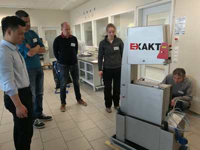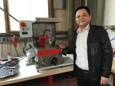 結(jié)束了EXAKT公司的行程,我們又來到了德國漢諾威APPARATEBAU WESER KG公司,創(chuàng)始人馬丁先生給我們介紹并演示了新一代的AW5機型,我們也實際操作了并被它小巧卻又強大的功能所震撼,同時馬丁先生也給我們介紹了全新的、能夠切割啞鈴型的和AW250數(shù)控切割機,這一新機型的系列產(chǎn)品將會滿足了國內(nèi)用戶的一大需求。