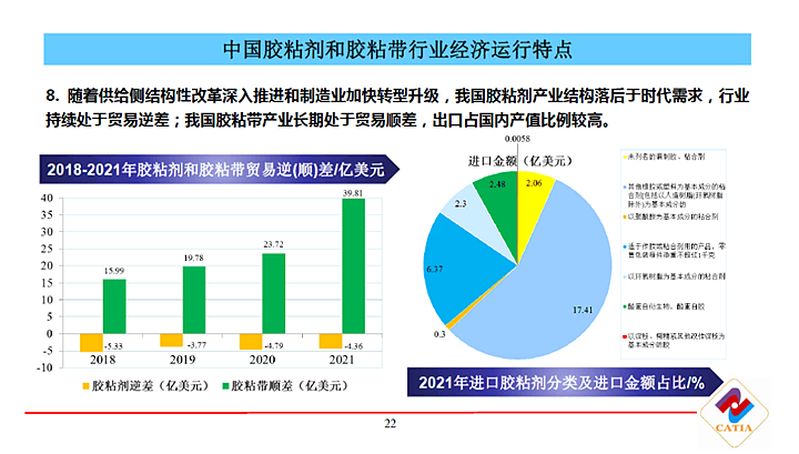 中國膠粘劑和膠粘帶工業(yè)協(xié)會秘書長楊栩介紹了中國膠粘劑和膠粘帶行業(yè)的市場現(xiàn)狀,發(fā)布了行業(yè)各品種的最新統(tǒng)計數(shù)據(jù),系統(tǒng)梳理了膠粘劑和膠粘帶相關政策和環(huán)境變化,并分享了2021年以來行業(yè)經濟運行的十大特點,以及行業(yè)未來的八大展望。
